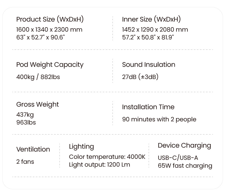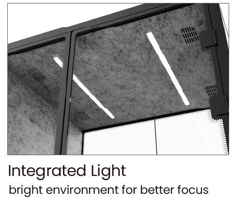 Advanced six-layer acoustic wall construction delivers up to 25dB (±3dB) sound reduction — ideal for confidential discussions, HR meetings, sales calls, and deep focus sessions. -