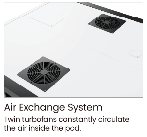 - Air Exchange System: Integrated ventilation for continuous airflow